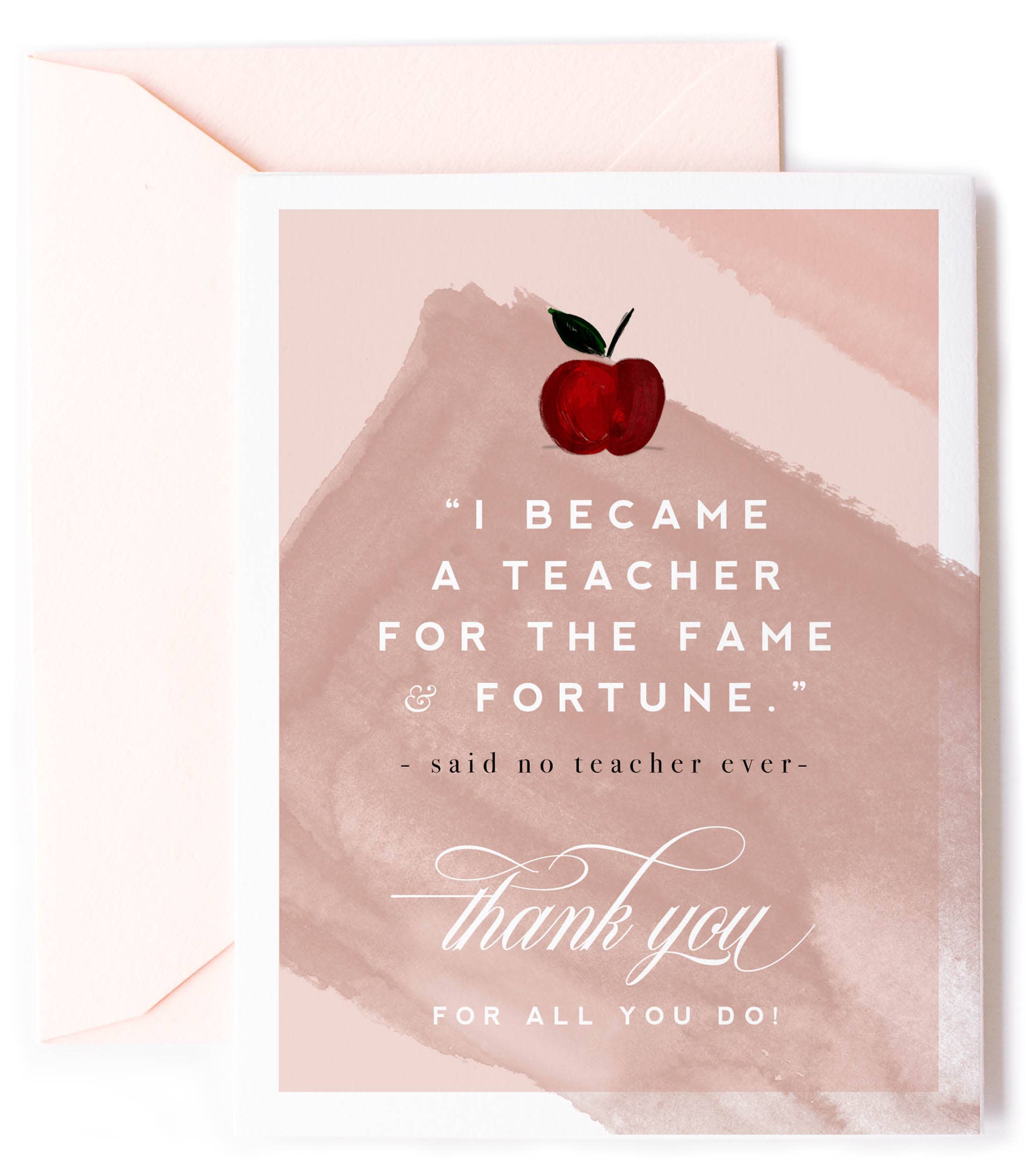 Teacher Gift, Fame & Fortune Teacher Thank You Greeting Card