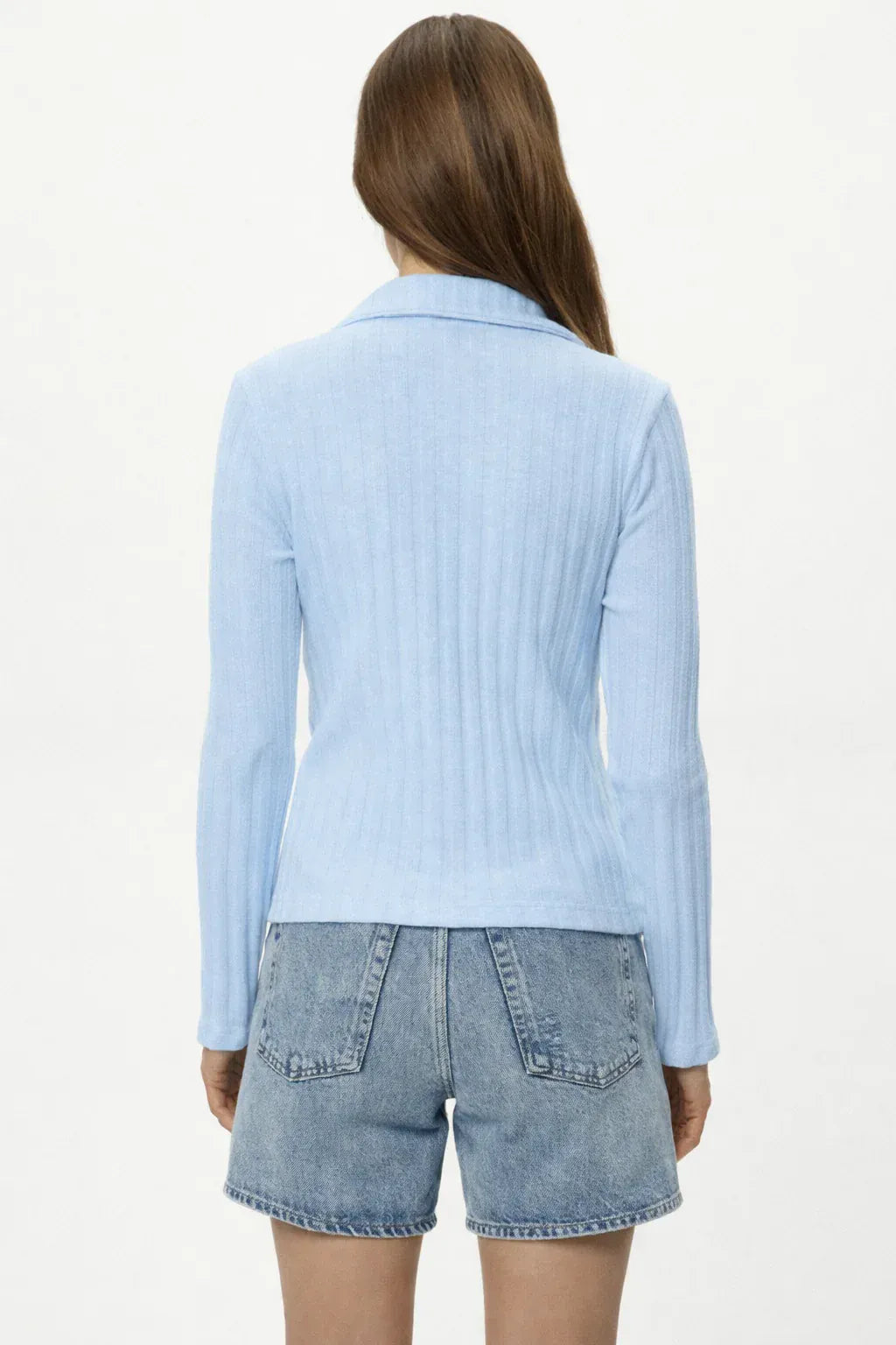 A nod to the 90’s is here in the Liyah Long Sleeve Top. With a classic collar contrasted by a v-neckline, this features a modern, body-skimming fit. Designed from our soft structured London Rib fabric, this stylish top is ideal for pairing with denim for a more elevated look.