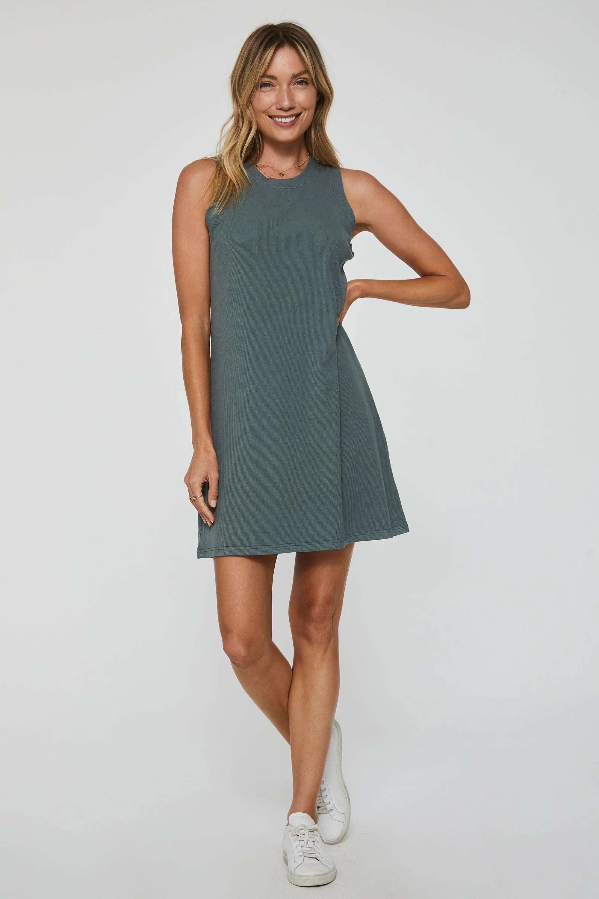 Ribbed dress, high crew neck finished sleeveless. Check mate! Beauty be gentle, perfect match of style & expression, endless heartbeats of admirations... Solid color knit on standard fit.