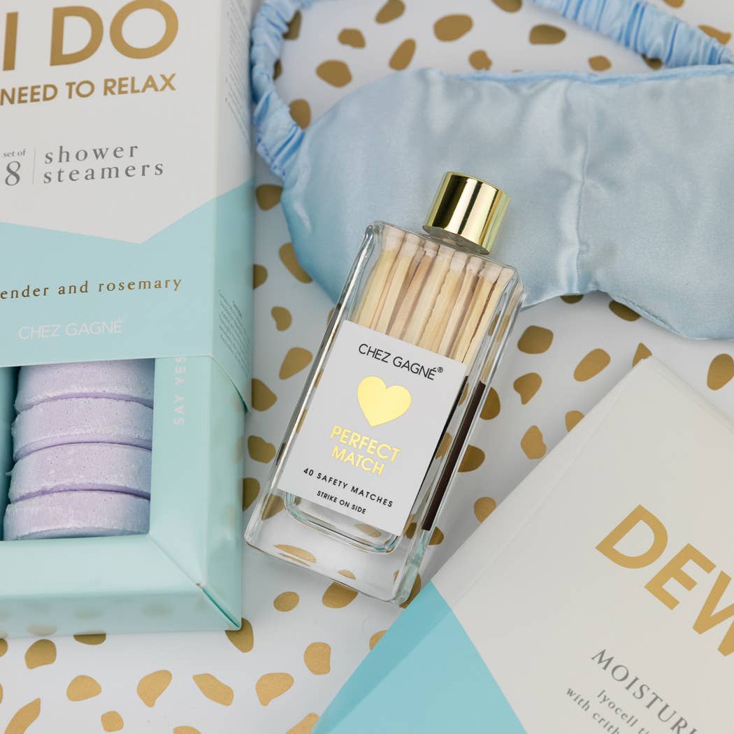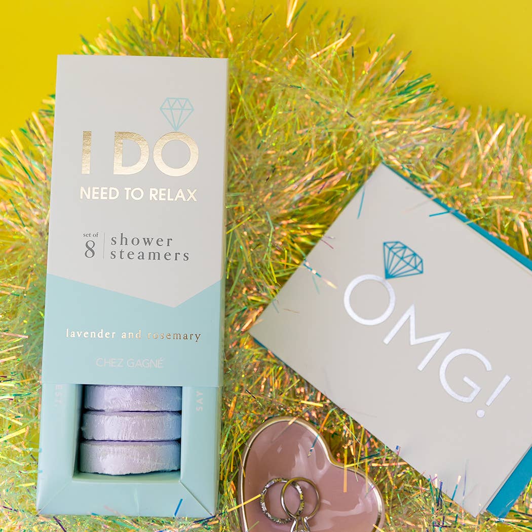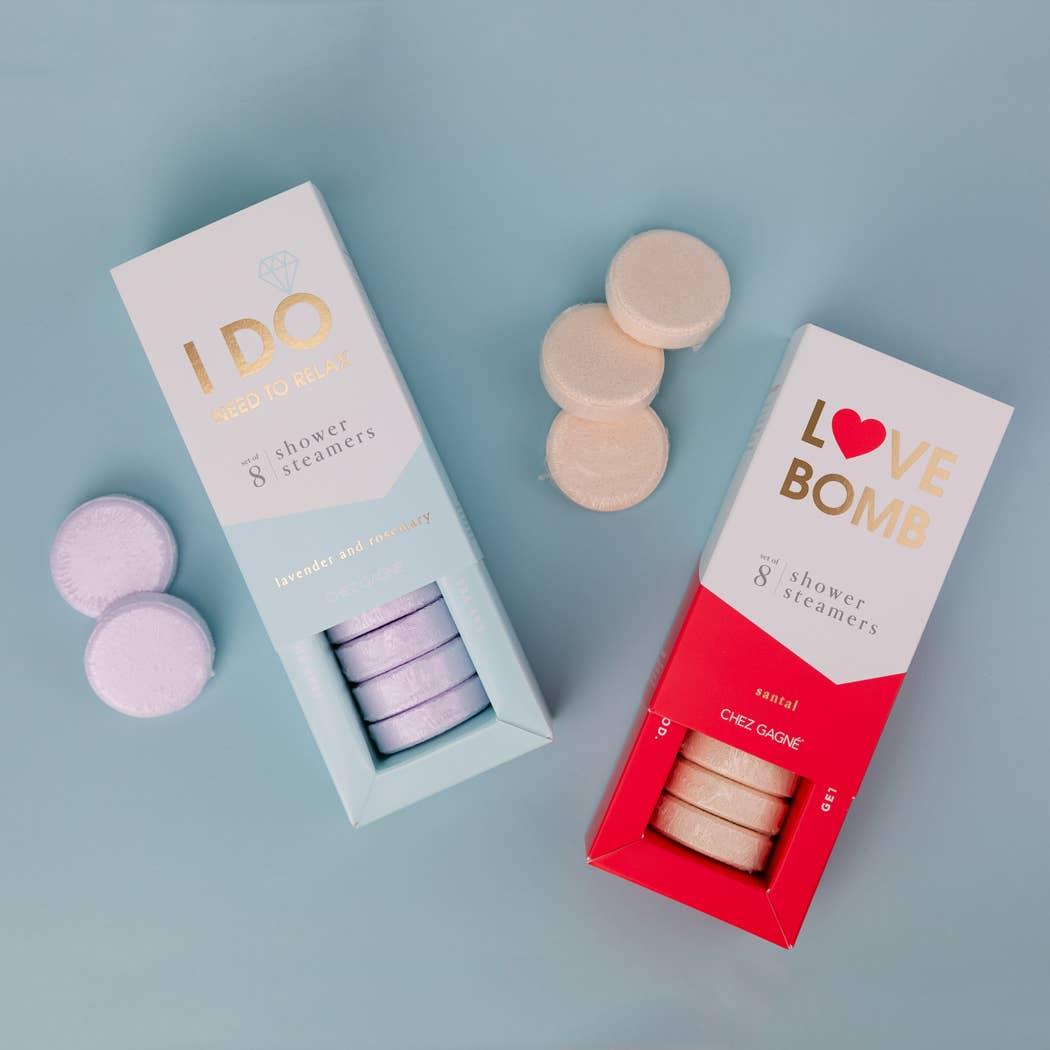 Chez Gagné shower steamers are made in sunny California with premium essential oils, phthalate free fragrances and natural colorants. None of the endocrine disrupting crap over here. Our steamers make the perfect clean gift or treat yourself moment - you deserve it babe. Set of 8 Aromatherapy Shower Steamers Made with Essential Oils + Premium Parfum Scent: Lavender + Rosemary Box Size: 6 x 3 x 2 Set of 8: .8 oz Tablets / Tablets Measure 1.75 x.5 Made in California Caution: Contains natural colorants. May cause discoloration dependent on shower material and existing soap scum. Thoroughly rinse the shower and tub immediately after each use to avoid discoloration. Do not use in bath.