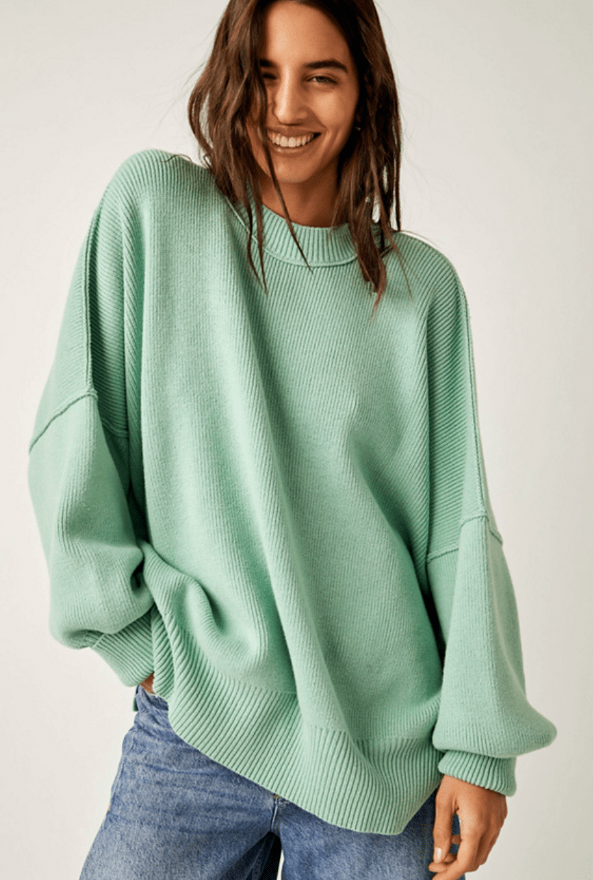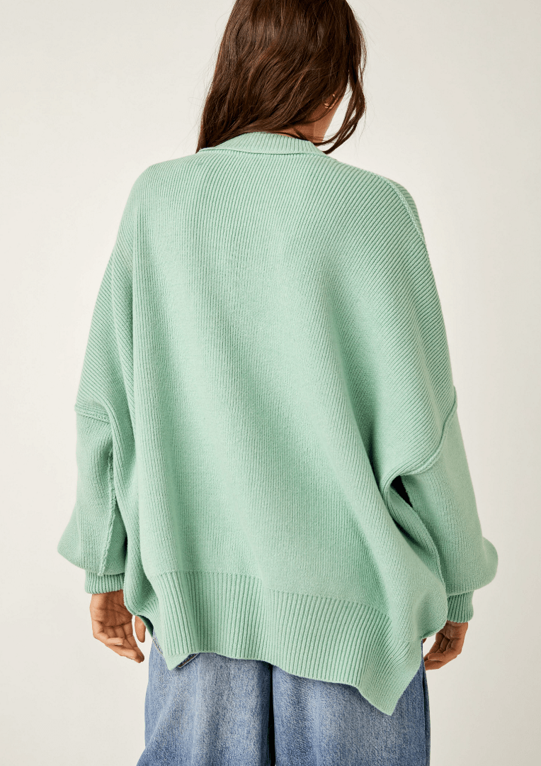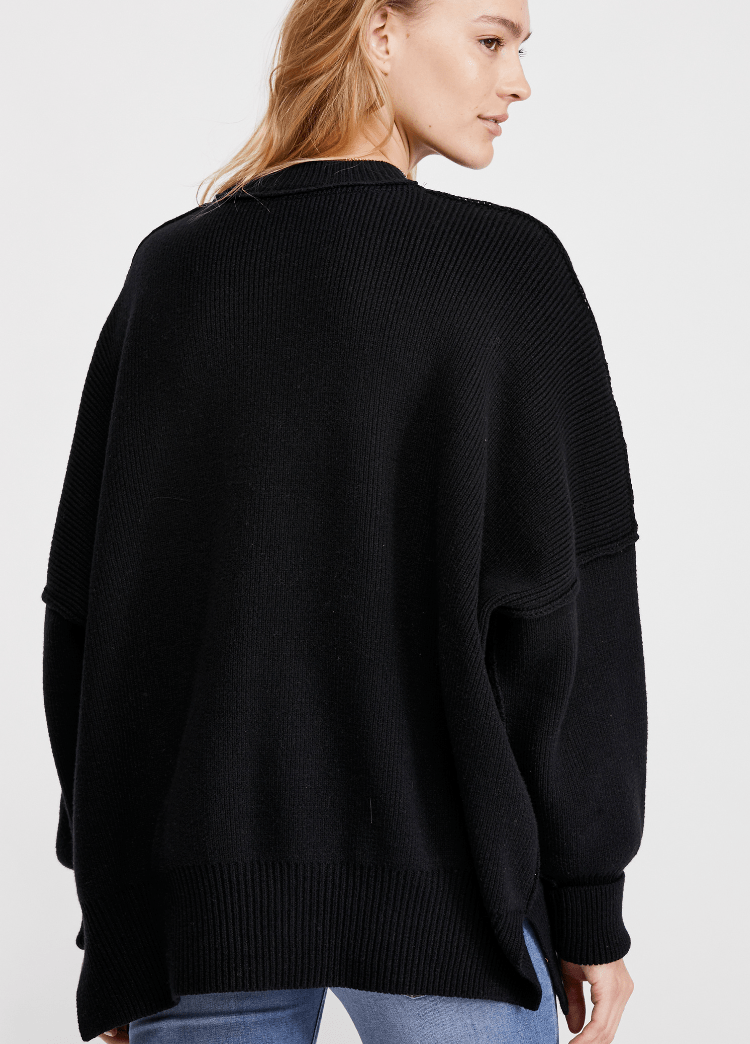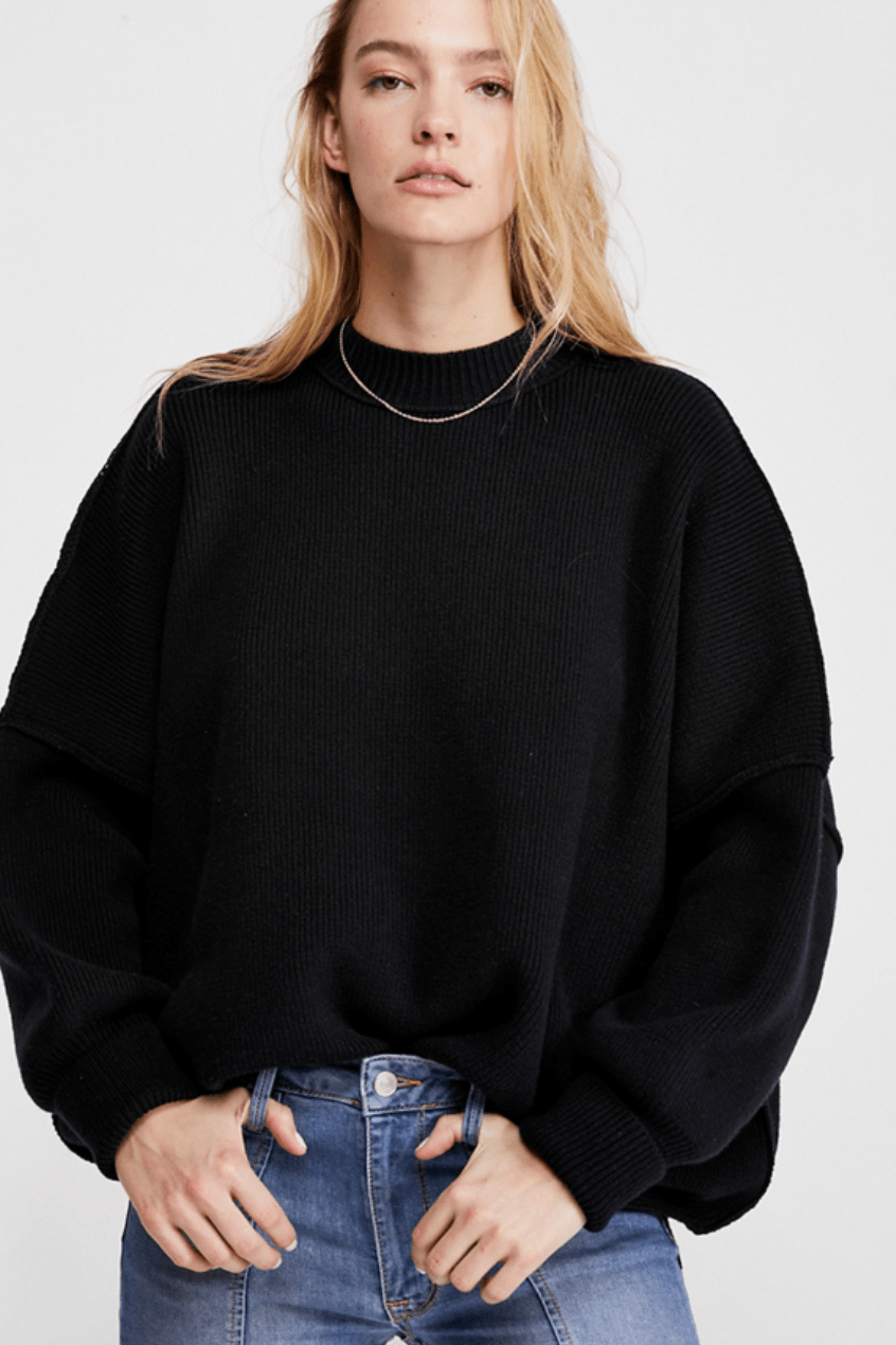 Ribbed mock neck pullover sweater featured in a tunic length.