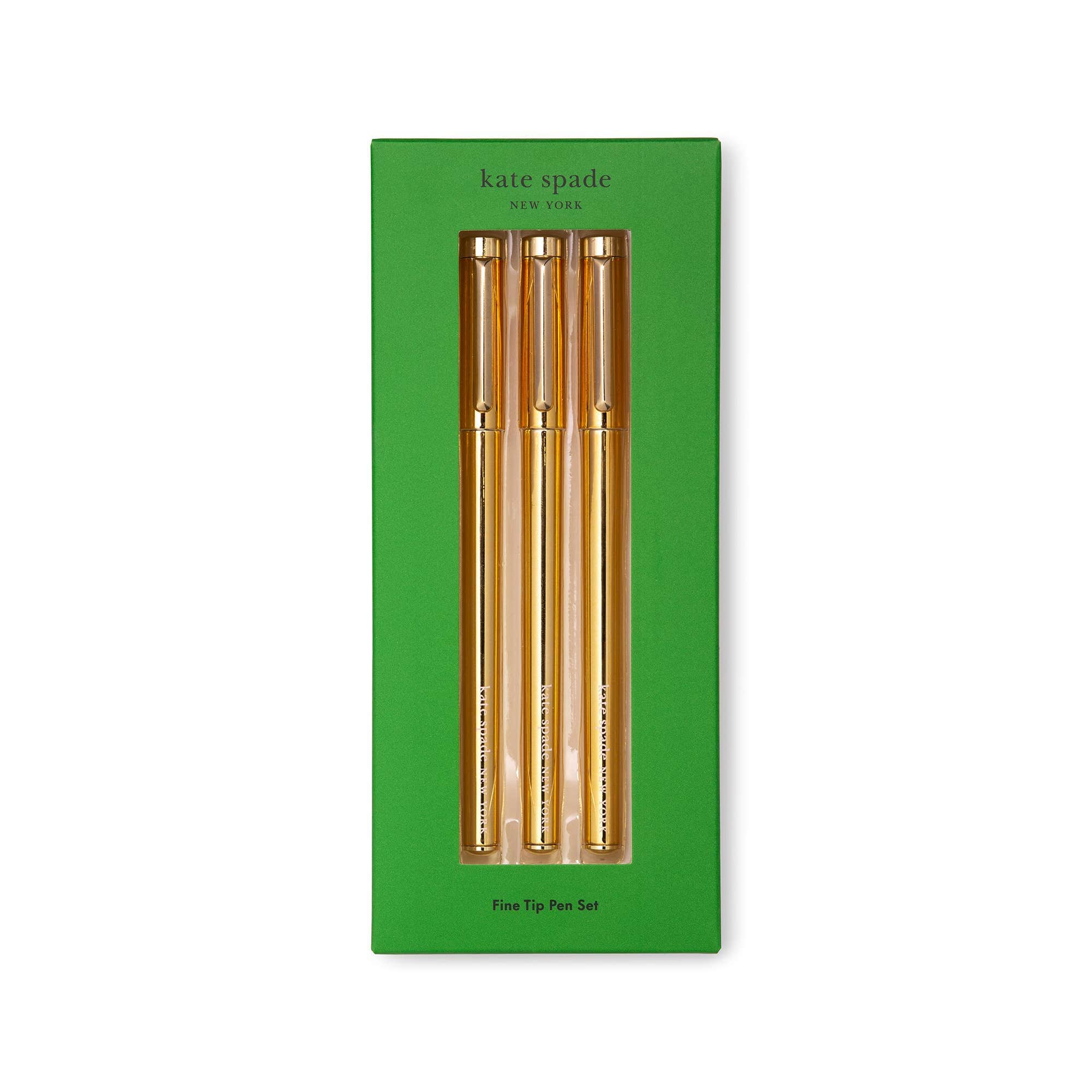 Looking for the perfect gift? Don't write off this gold fine tip pen set from Kate Spade New York. Pens feature black ink and etched logo. Set of 3.