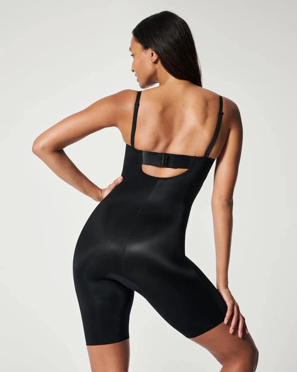 - Strapless Mid-Thigh Bodysuit: Provides strong compression that shapes your figure from tummy, hips, through thighs