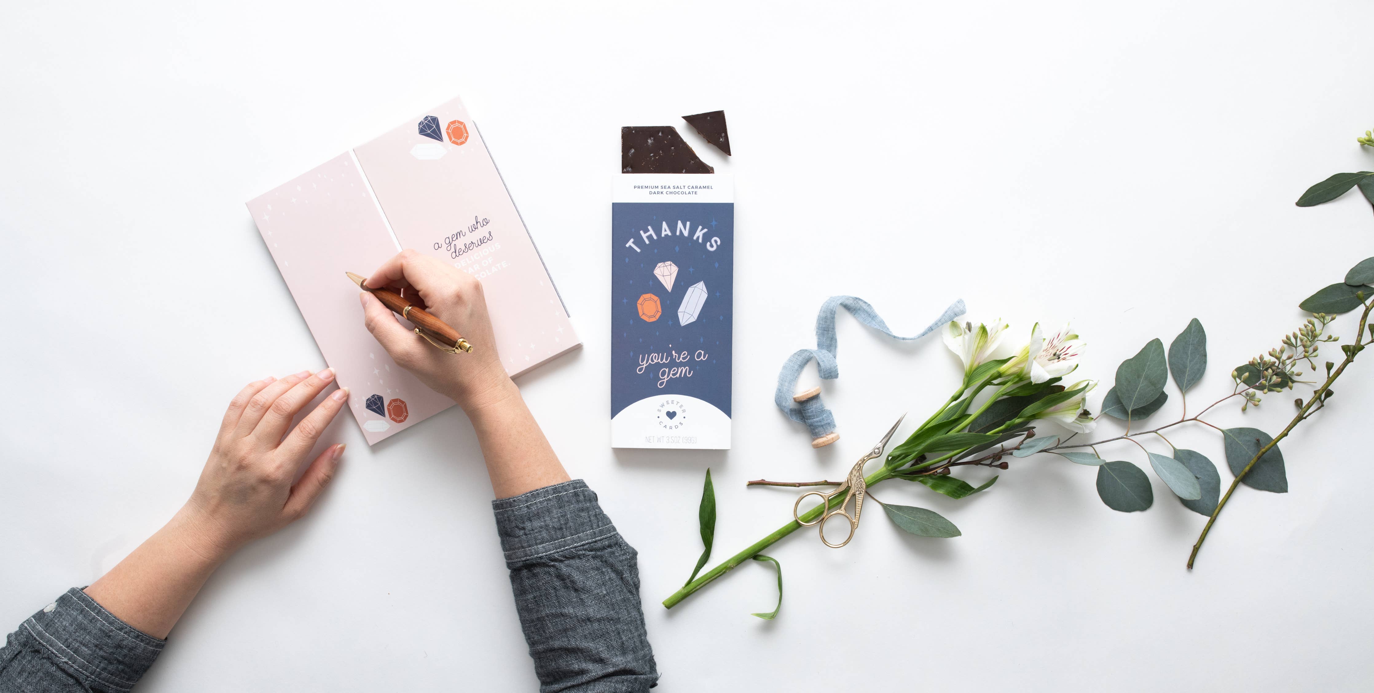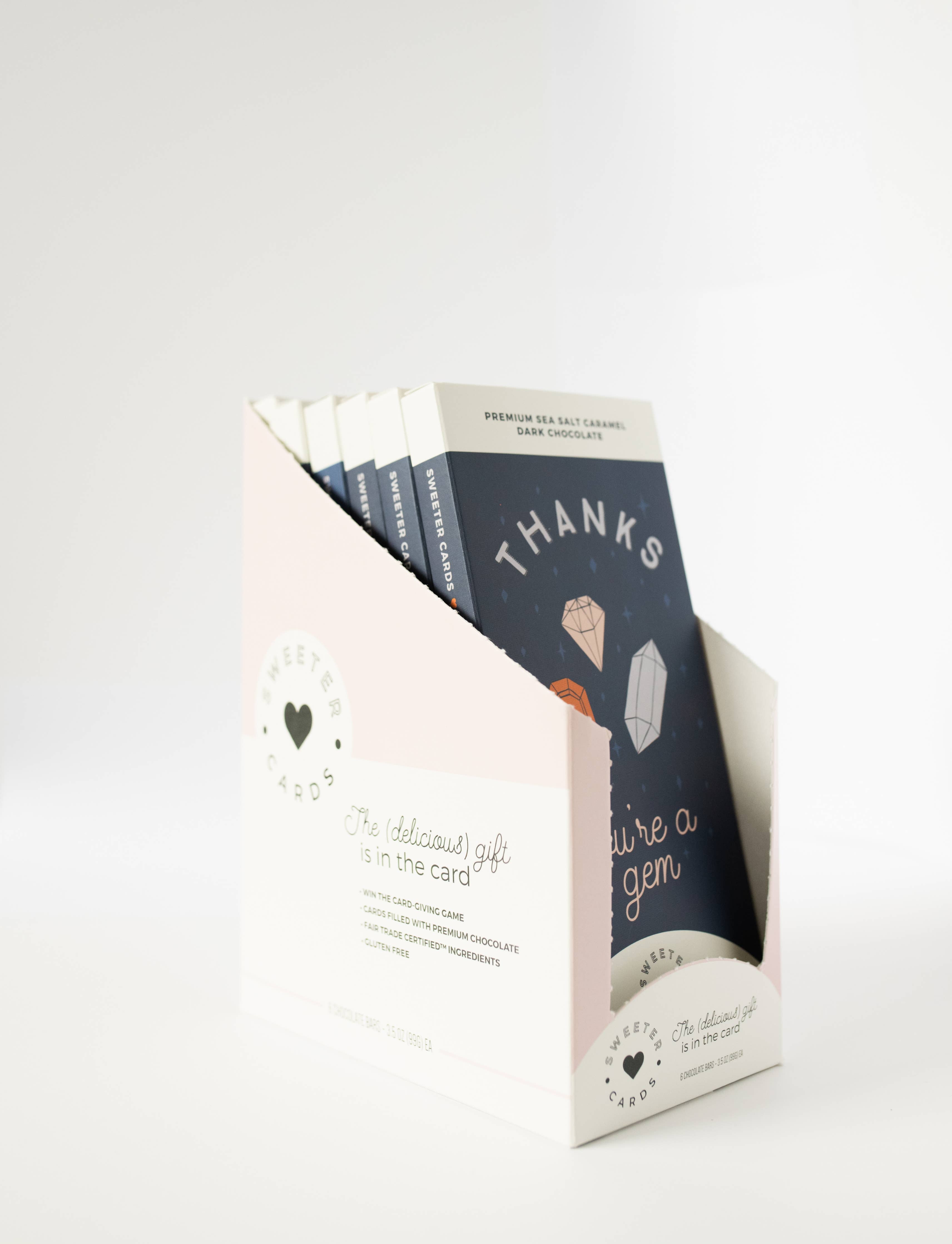A thank you card that says more... because there is chocolate inside! When a card is not enough and a gift is too much... enter Sweeter Cards, a new greeting-card-meets-chocolate-bar brand based in St. Louis.